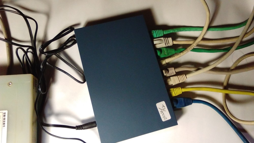 ルーターだけでは全然足りませんから右側のハブをつないでLANポートを増やしています。