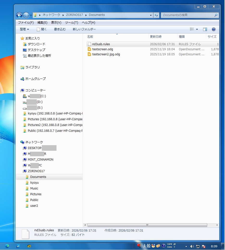 2)Windows7初号機をONにしないときは別のWindows7マシンを最初に起動すること(この場合にはマスターブラウザが確定するまでしばらく時間がかかる)。