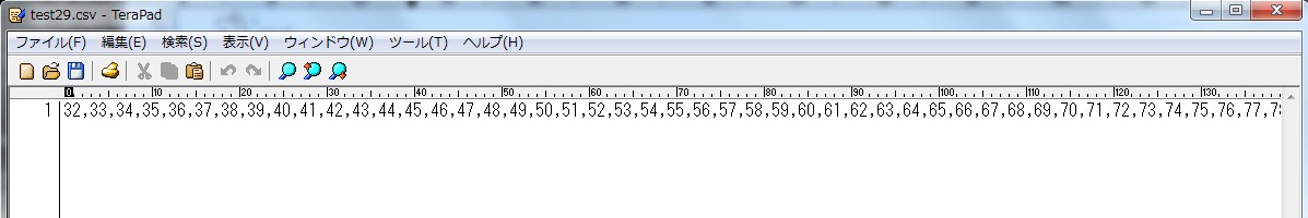CSVファイルですから値の区切りは今までと同じように「,」ですがここで表示されている文字は今までの「英数記号」ではなくて普通に計算で使う十進数になっています。