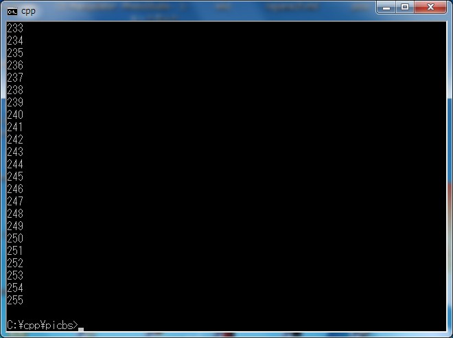 0〜255まで正しく十進数に変換されていることが確認できました。