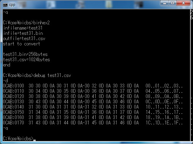 そのあとDEBUGコマンドでTEST31.CSVの内容を確認しました。