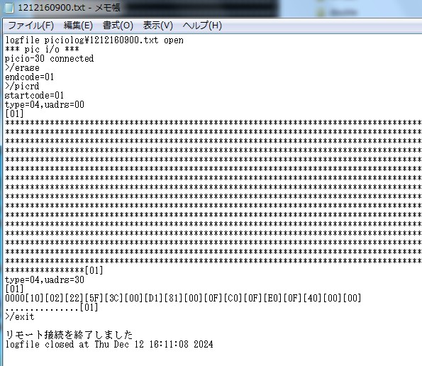 さきほど/PICRDを実行したときに読み出されていたプログラムデータが全部*になっています。