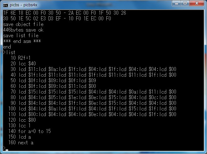 下はCGRAMパターンを書き込んだ後それを表示するプログラムです。