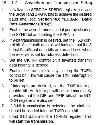 EUSARTの送信モジュールと受信モジュールは独立して動作しますがデータフォーマットやボーレートは共有しています。