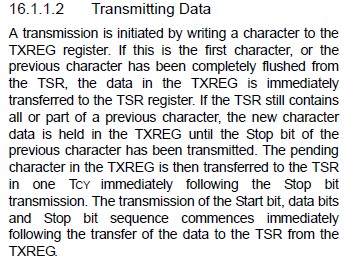 TRMTビットはTSRレジスタが空のときにセットされ、TXREGからデータがTSRレジスタに送られるとクリアされます。