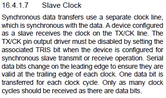 TX/CK端子の出力ドライバはEUSARTが同期スレーブ送信またはスレーブ受信モードに設定されているときは対応するTRISビットをセットして(’1’にして)無効にしなければなりません。
