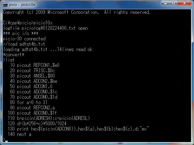 ●PICUSBIO−03(121)ADコンバータ(4)DAC出力をADCに入力する(2)アナログ値に変換する