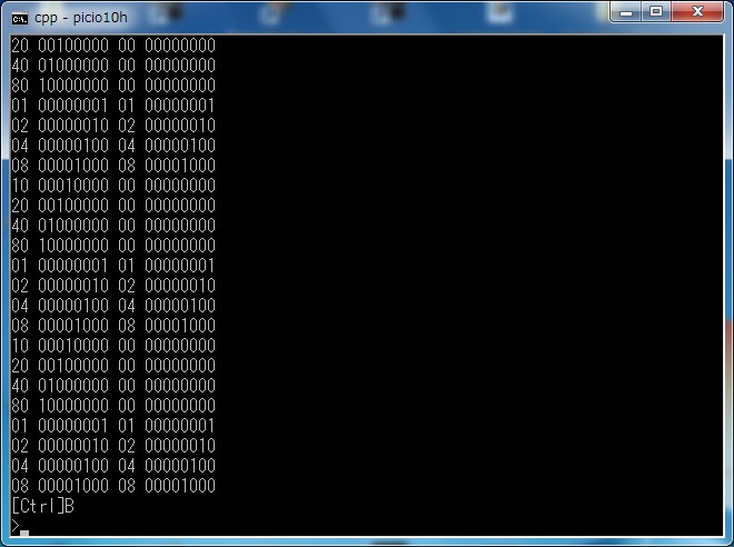 PICUSBIO−10はそのデータを受け取ってそれをCポートの上位4ビットに返します。