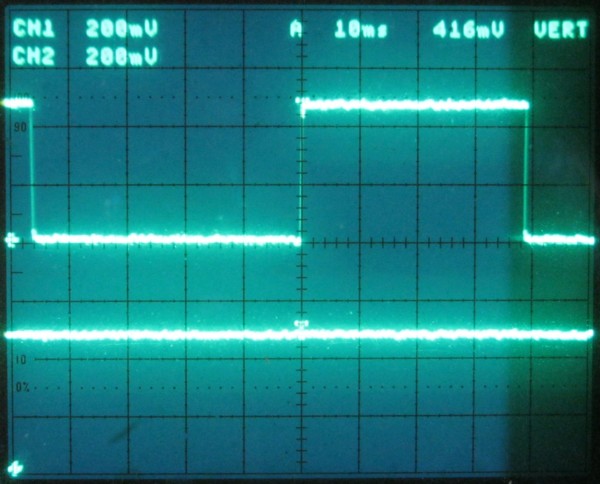 上の波形はUSB(HID)の通信速度の影響でデューティ比は50%になっていませんが1周期としては大体計算に近い結果になっています。