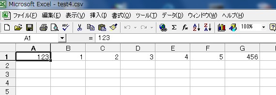 実行の結果作成されたデータファイルtest4.csvをTeraPadで開いてみました。