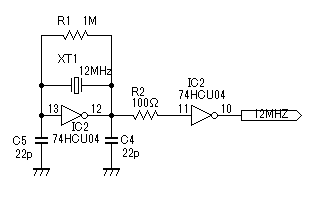 たまたまみつけて利用した試作基板の水晶発振回路です。