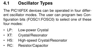 PIC16F716と同じで内蔵クロック発振モードはありませんがその代わりにクロック端子に抵抗とコンデンサを接続することでRC発振をCPUクロックにすることができます。