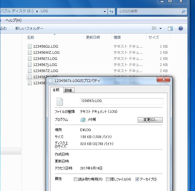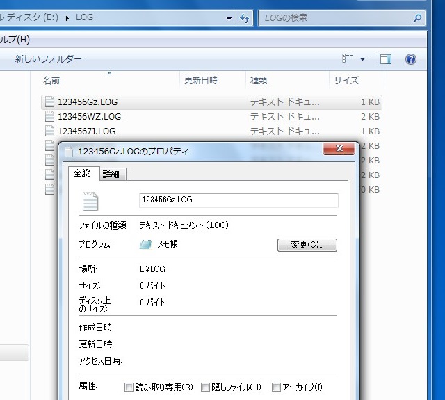 そもそもエクスプローラにはちゃんと123456Wz.LOGというファイル名が表示されているのですから、おかしな話です。