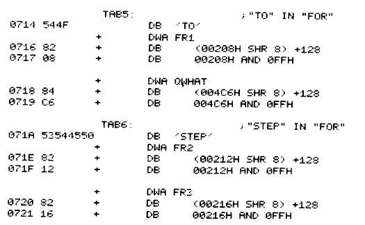 文字列’TO’がみつかったときはアドレス0716、0717の値の最上位ビットを0に戻してそのアドレス(0208)にジャンプします。