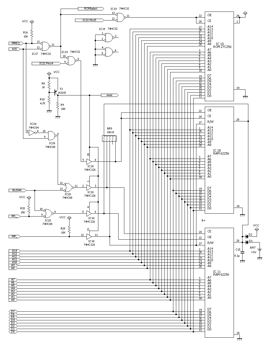 回路図を見ていただければおわかりの通り増設用のRAMも標準RAMと同じようにボタン電池でバックアップされます。