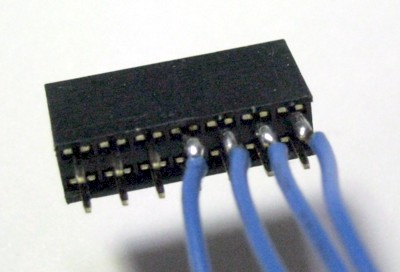 ソケットには向きはありませんが、下の写真のように見て、上側右4本の端子に被覆線をハンダ付けします。