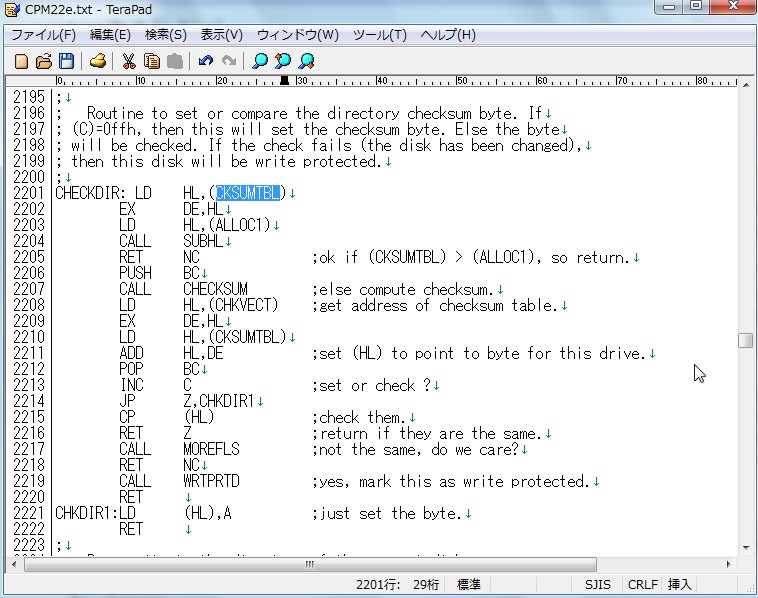 [第32回]で、とりあえずのCP/Mソースプログラムの修正作業は完了です、と書きましたが、いろいろ作業を進めておりますと、だんだんと理解が深まってきて、さらに直したいところなどが出て来てしまいます。