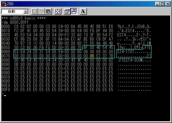 ZB3BASICを立ち上げて、DMコマンドでCP/Mのシステムエリアを表示させてみました。