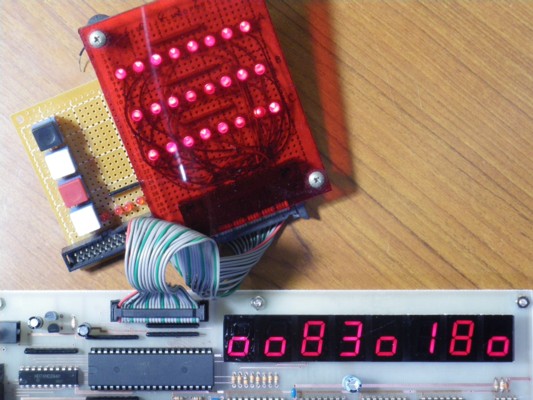 なおこの[追記]では説明の都合で[0][0][8][3][ADRSSET]と書きましたが、すでに上の本文で説明をしましたようにI/Oアドレスは下位2桁(8ビット)のみが有効ですから、[*I/O][IN]、[*I/O][OUT]の操作に対しては、7セグメントLEDのアドレス表示部の上位2桁(左端2桁)は意味をもちません(無視されます)。
