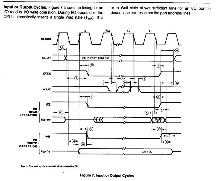 82C55などのI/O用LSIはメモリに比べてアクセスタイムがやや遅いものが多かったため、Z80では、IN、OUT関係のマシンサイクルは、強制的に1クロックが挿入されるようになっています。