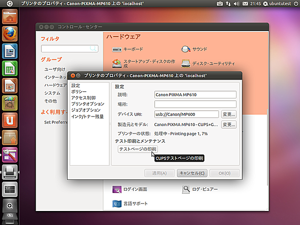 MP600プリンタドライバの設定には、UBUNTU日本語フォーラムの「MP600のドライバインストール」を参考にさせていただきました。