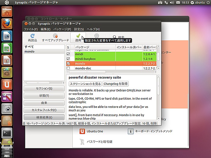 Mondo Rescueのインストールは、今まで説明したアプリケーションのように、ソフトウェアセンターから行なうのではなくて、Synapticパッケージマネージャで行ないます。