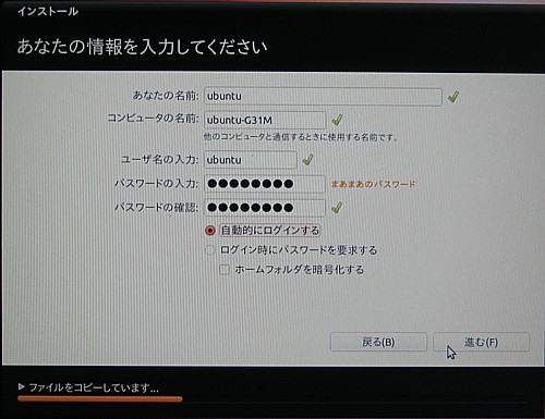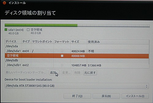 上でクリアしたハードデイスクにUBUNTU11.04をインストールします。