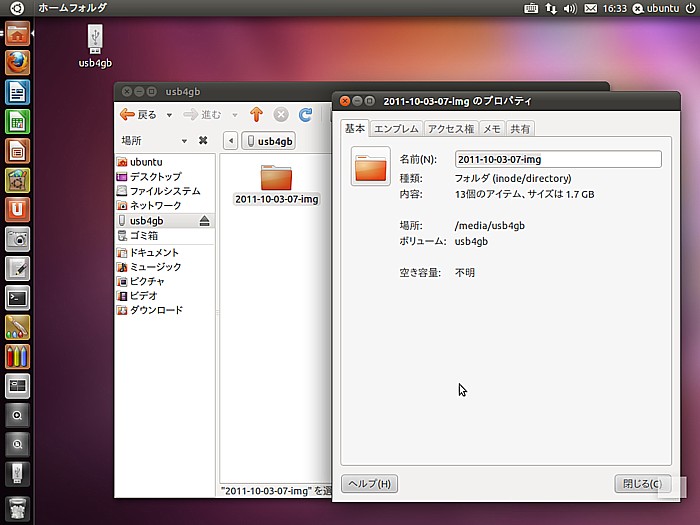 ちなみに、これはUBUNTUでUSBメモリを開いたところです。