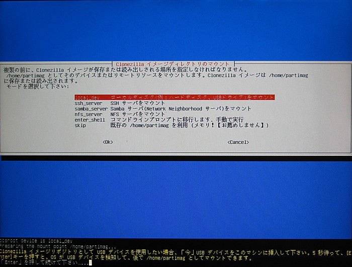 「local_dev ローカルディスク(例:ハードディスク、USBドライブ)をマウント」を選択して、[Enter]キーを押します。